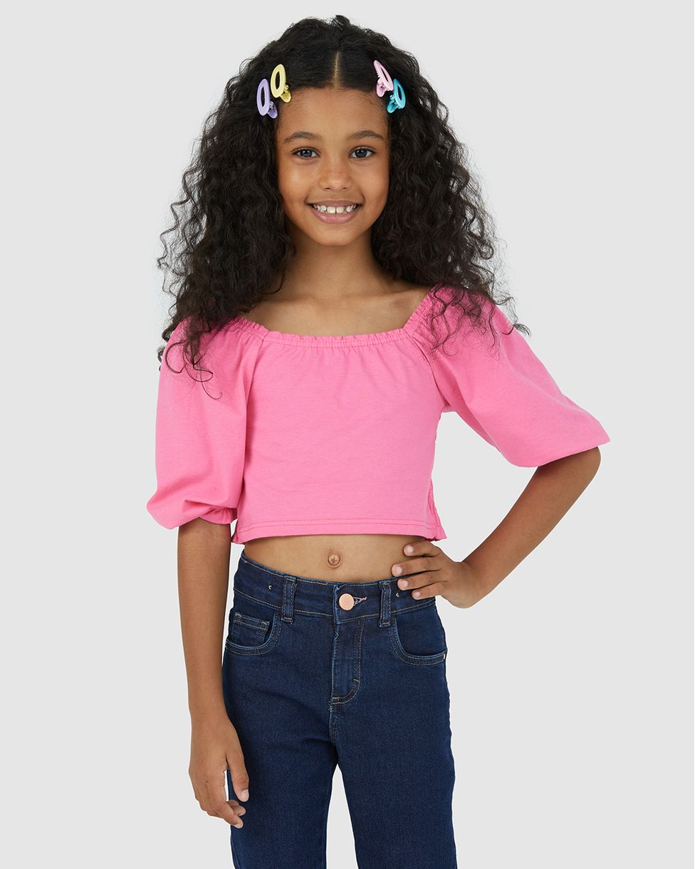Blusa infantil feita em meia malha de algodão. A blusa com decote Ombro a Ombro é perfeita para combinar com as mamães. Ela apresenta comprimento Cropped, mangas curtas com volume e costas aplicadas em Lastex, para total conforto. Além disso, ela foi feita em meia malha 100% algodão, sendo super confortável, respirável com toque macio e fácil manuseio, garantindo alta durabilidade no uso. Uma peça Malwee Kids especial para o Dia das Mães.
