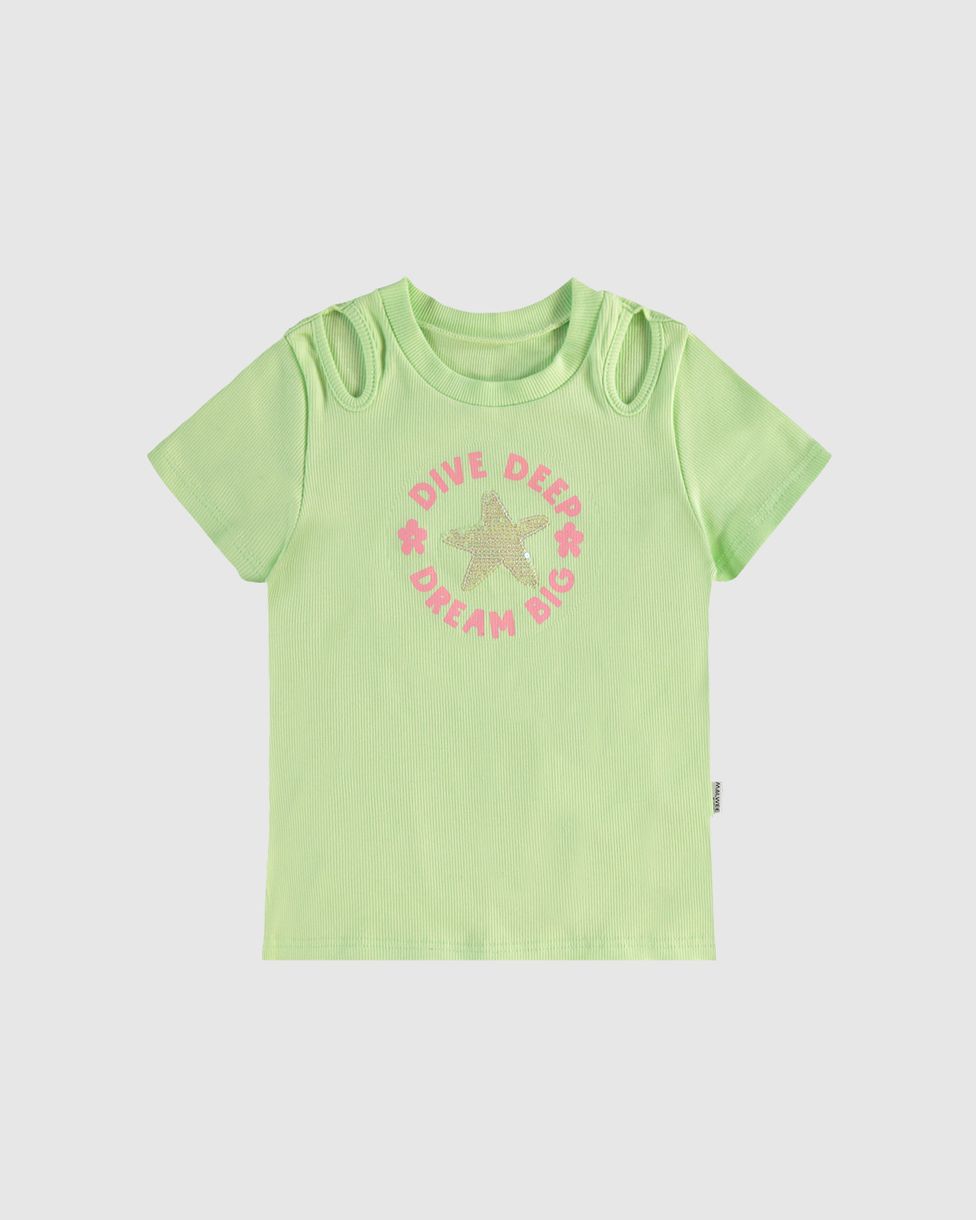 InfantilBlusas e CamisetasBlusas Manga CurtaBlusa Infantil Menina Detalhe Vazado No Ombro Em Ribana Malwee Kids