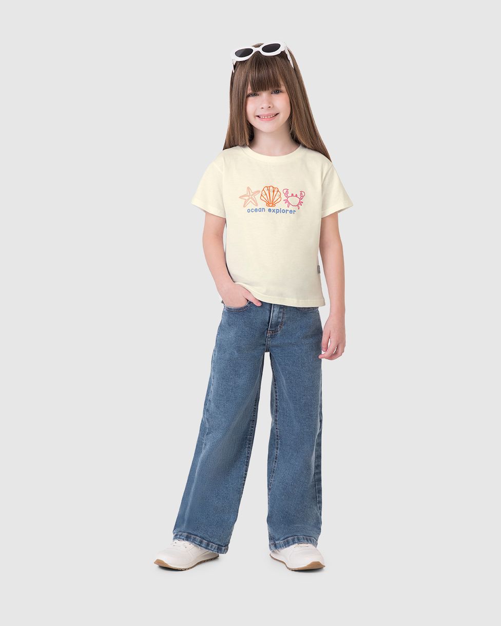 InfantilBlusas e CamisetasBlusas Manga CurtaBlusa Infantil Menina Estampa Aplique De Pérolas Em Algodão Malwee Kids