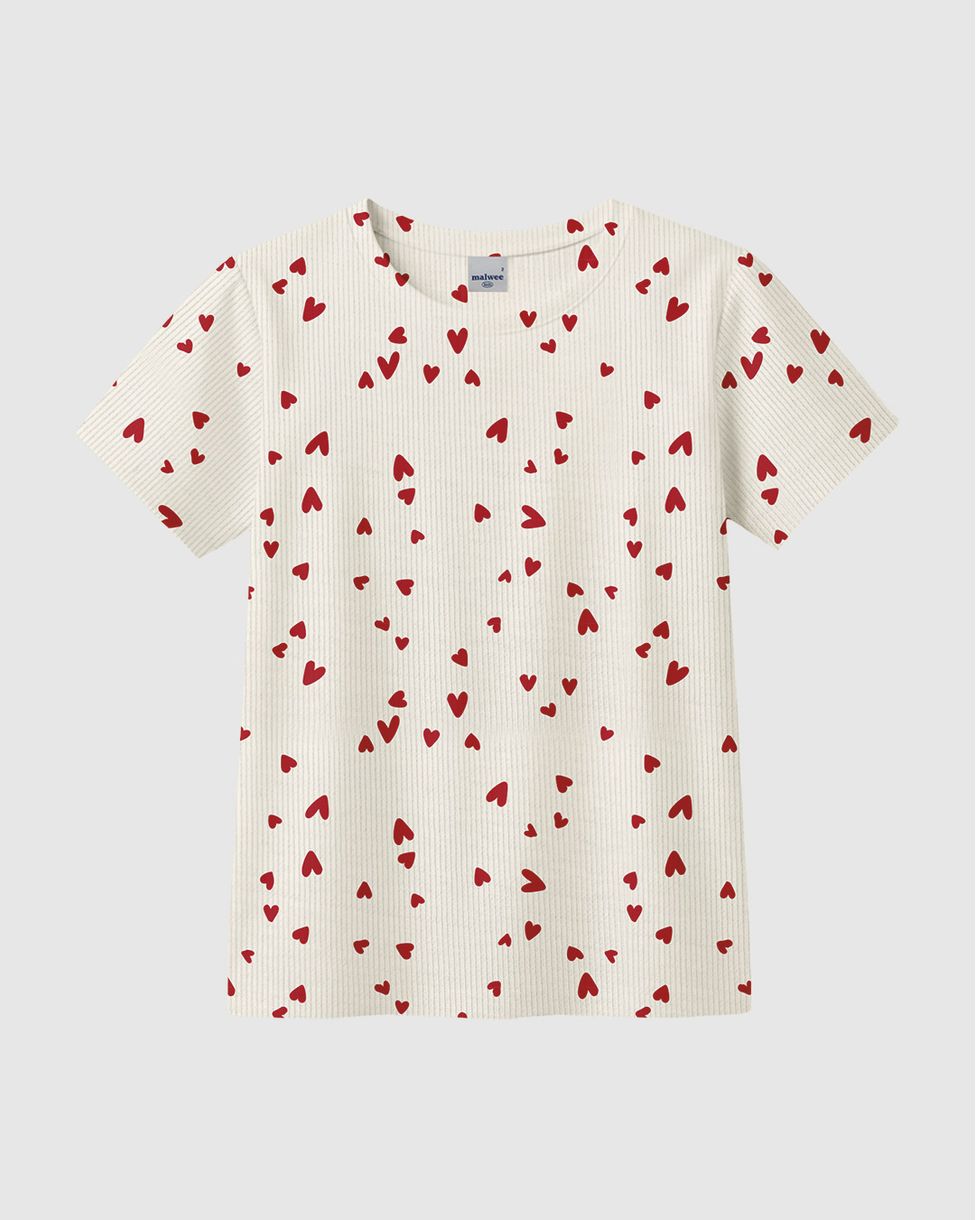 Blusa Infantil Menina Estampa Coração Manga Curta Em Ribana Malwee Kids
