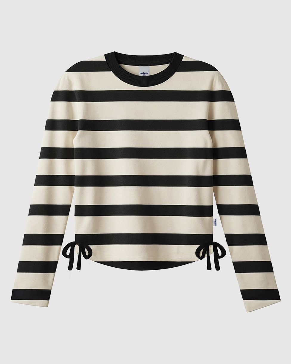 InfantilBlusas e CamisetasBlusas Manga LongaBlusa Infantil Menina Listrada Manga Longa Detalhe Laço Lateral Malwee Kids