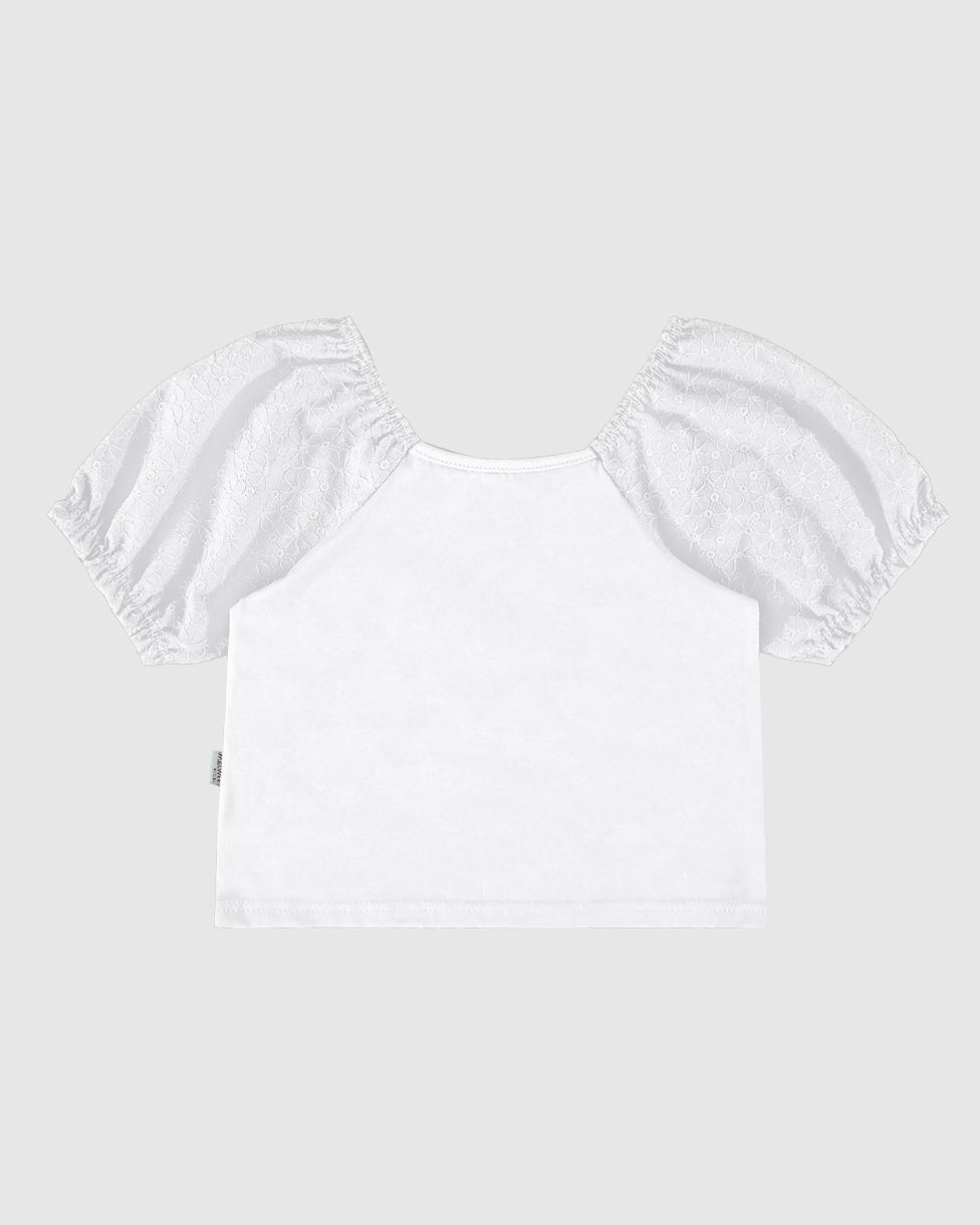 Blusa Infantil Menina Manga Bufante Em Laise Algodão Malwee Kids