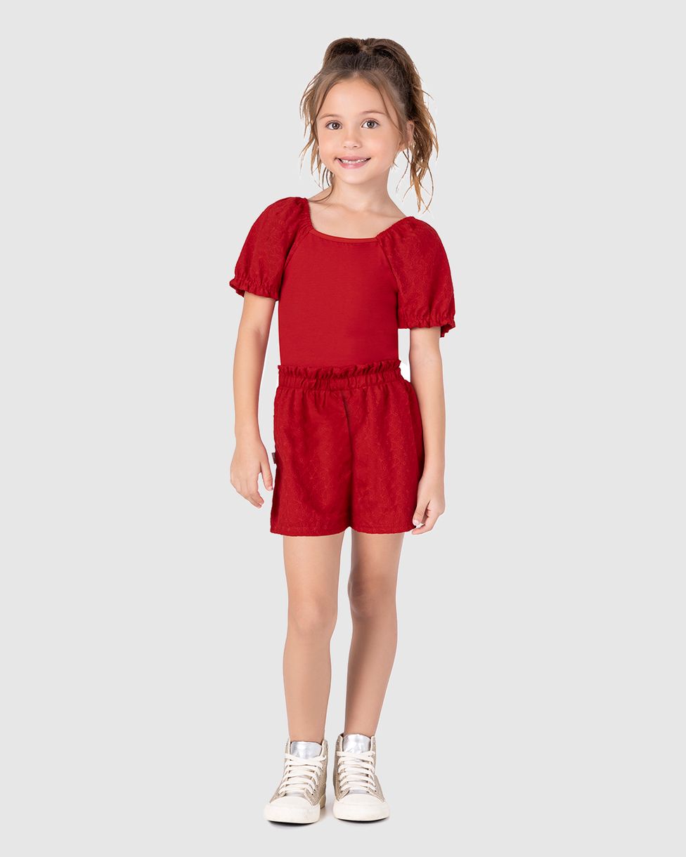 Blusa Infantil Menina Manga Bufante Em Laise Algodão Malwee Kids