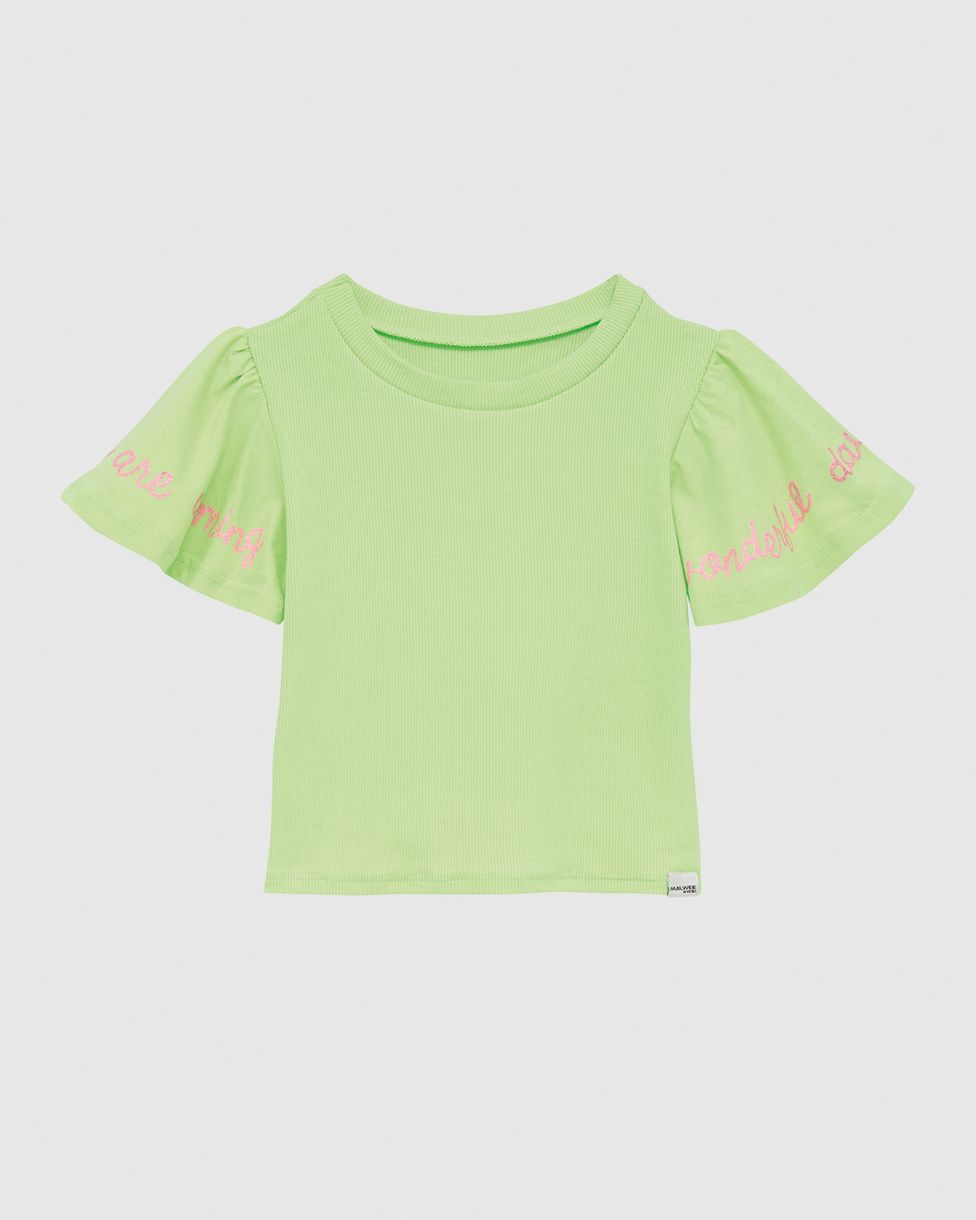 • Estampa lettering com glitter nas mangas, super fofa
