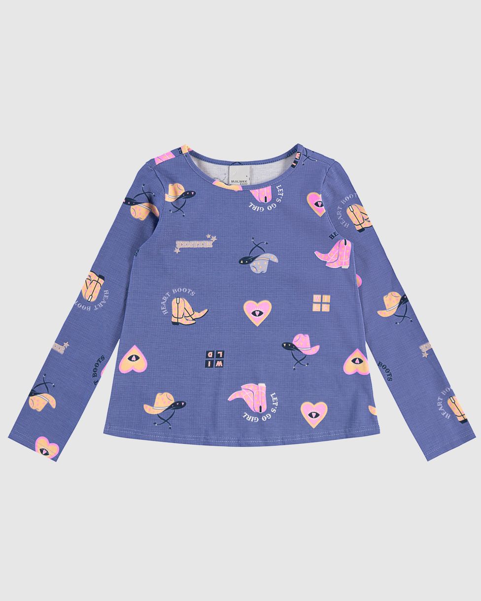 Blusa Infantil Menina Manga Longa Estampada Em Algodão Malwee Kids