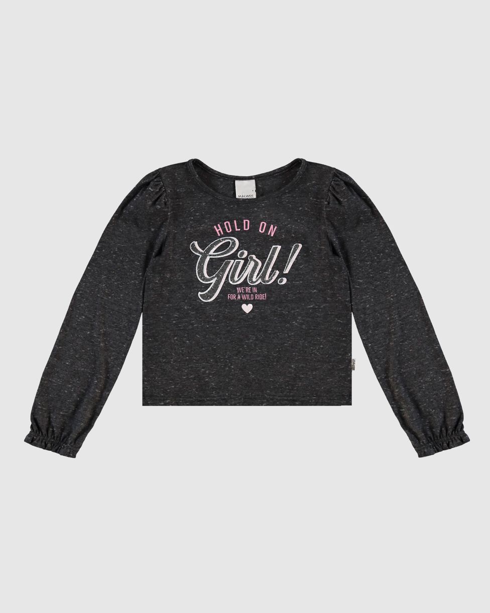 Blusa Infantil Menina Manga Longa Hold On Girl! Em Malha Botonê Malwee Kids