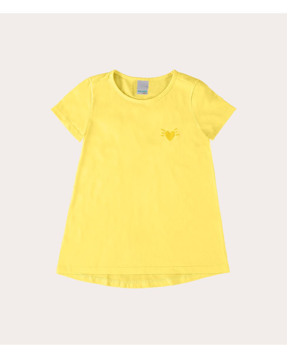 Blusa infantil confeccionada em meia malha 100% algodão. Apresentando um modelo Mullet, com parte traseira maior que a frontal, essa blusa para as meninas conta com decote redondo, mangas curtas e detalhe de pequena estampa em efeito Puff, de alto relevo perceptível ao toque. Os básicos da Malwee Kids são essenciais para acompanhar o crescimento das crianças, são peças versáteis e duráveis além de terem a melhor qualidade do mercado brasileiro. A meia malha de algodão é um tecido leve e fresco, moldando-se perfeitamente ao corpo com bom caimento e maior durabilidade.