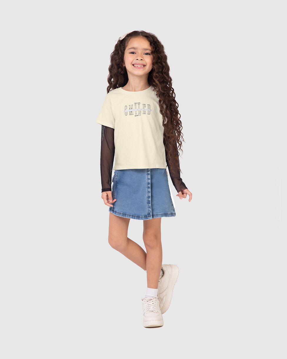 Blusa Infantil Menina The Girl Smiled Malwee Kids: perfeita para looks cheios de charme e delicadeza. Com mangas longas em tule, proporciona um toque moderno e sofisticado. A frase The Girl Smiled Brightly inspira alegria e confiança, transformando esta peça em uma escolha especial para diversas ocasiões.