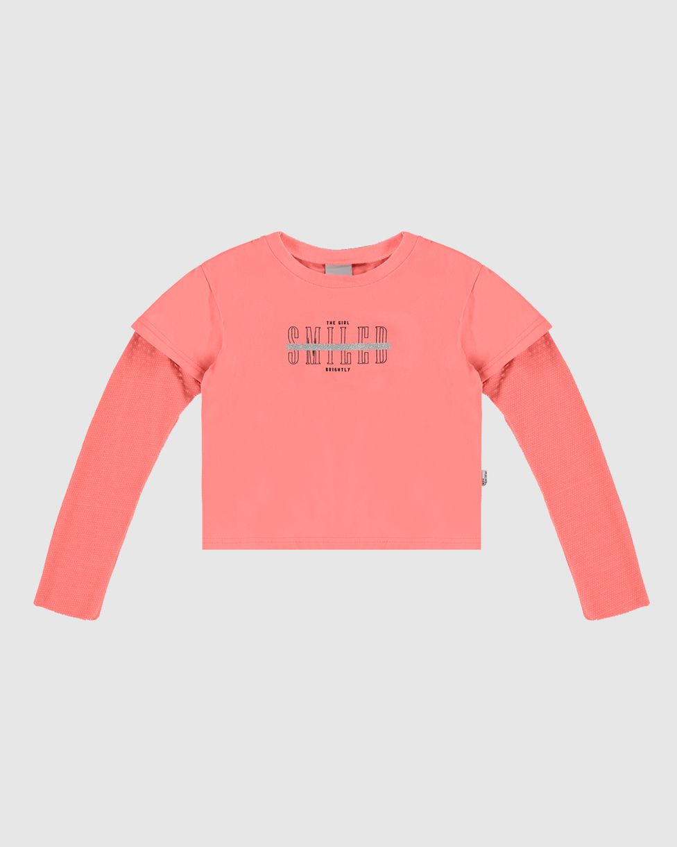 Blusa Infantil Menina The Girl Smiled Manga Longa De Tule Malwee Kids