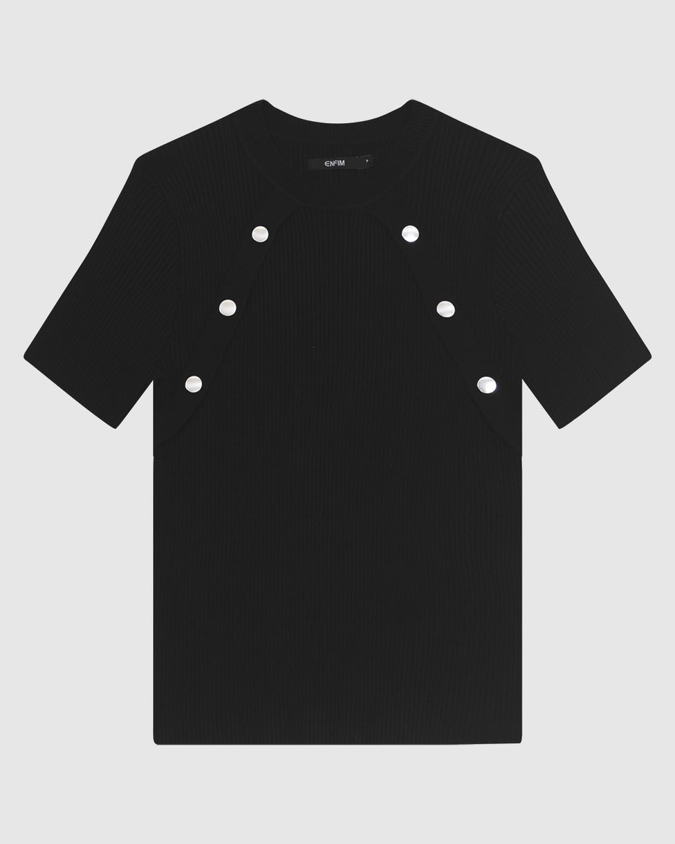 FemininoBlusas e CamisetasBlusas Manga CurtaBlusa Justa Feminina Detalhe Botões Decorativos Em Tricô - ENFIM