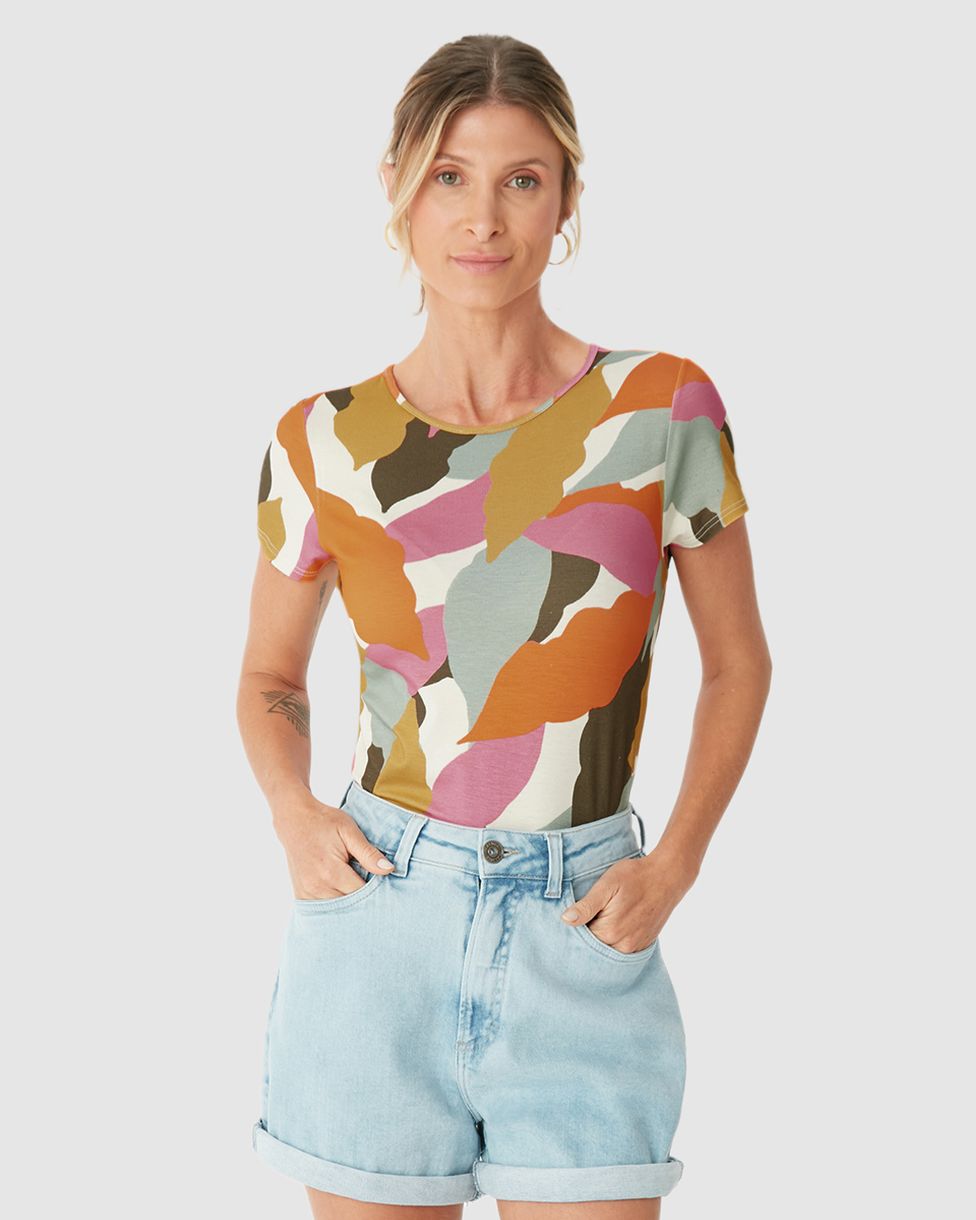 Blusa Justa Feminina Estampada Em Viscose Stretch