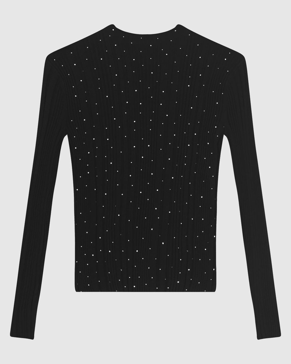FemininoBlusas e CamisetasBlusas Manga LongaBlusa Justa Feminina Gola Alta Aplique Termocolante Strass Em Tricô - ENFIM