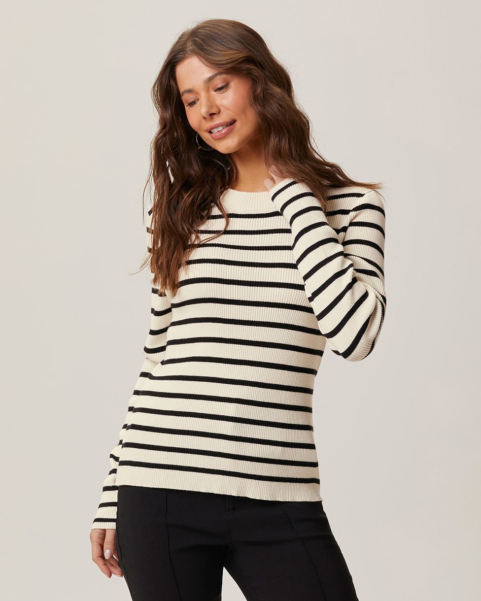 Blusa Justa Feminina Listrada Manga Longa Em Tricô