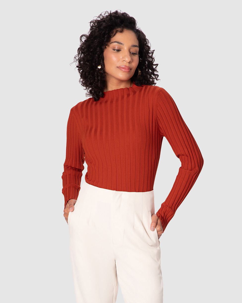 Blusa Justa Feminina Manga Longa Fenda No Punho Em Tricô Vermelho - P