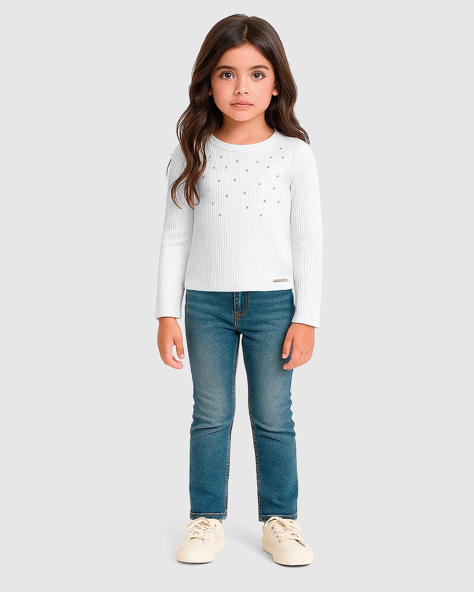 InfantilBlusas e CamisetasBlusas Manga LongaBlusa Menina Aplique Com Strass Manga Longa Em Ribana - Carinhoso