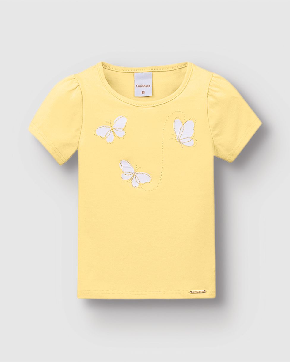 A Blusa Menina Bordado Com Aplique Borboletas Em Algodão - Carinhoso é delicada e cheia de charme, perfeita para as meninas que adoram um toque especial no visual. Confeccionada em algodão macio, oferece conforto e respirabilidade para os dias quentes com estilo.