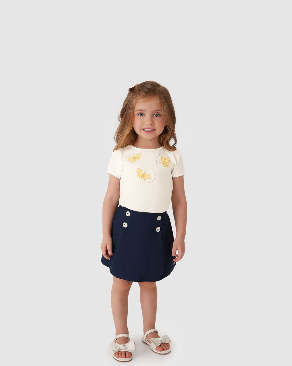 Blusa Menina Bordado Com Aplique Borboletas Em Algodão - Carinhoso Off White - 1
