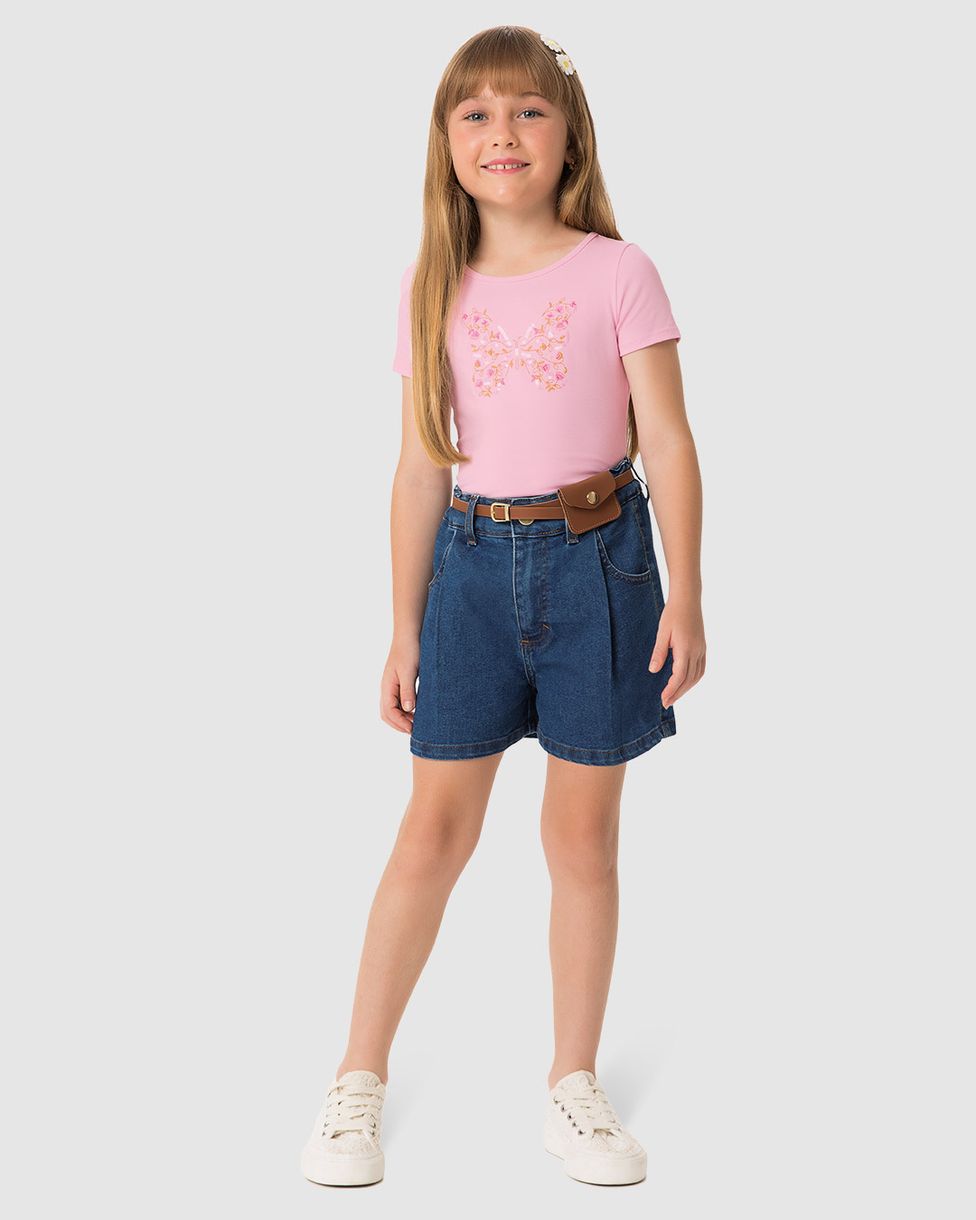 InfantilBlusas e CamisetasBlusas Manga CurtaBlusa Menina Bordado Com Lantejoulas Em Algodão - Carinhoso