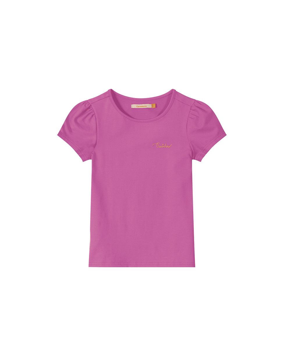Blusa confeccionada em malha de algodão. Um modelo basico e com muita versatilidade para compor os looks das pequenas, essa peça conta com decote redondo, mangas curtas com leve franzidos e detalhe de bordado frontal em lurex da marca. Além disso, ela foi feita em malha de algodão de toque suave garantindo conforto e muita versatilidade de uso no dia a dia. Ideal para combinar com shorts em jeans e tênis de caninho!