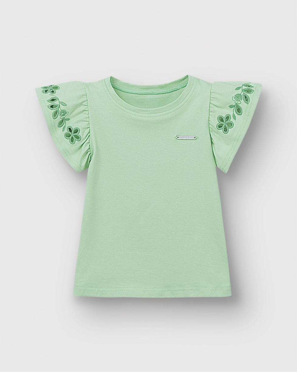 InfantilBlusas e CamisetasBlusas Manga CurtaBlusa Menina Bordado Na Manga Em Algodão - Carinhoso