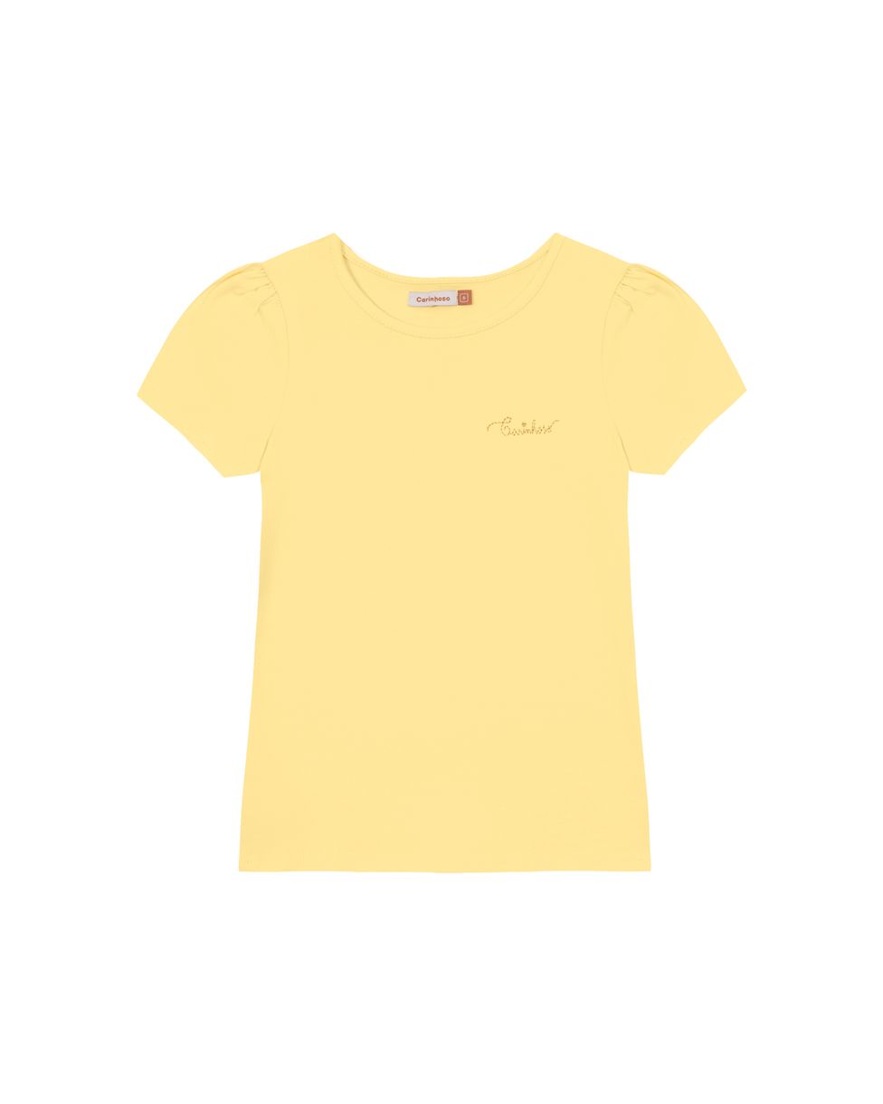 InfantilBlusas e CamisetasBlusas BásicasBlusa Menina Bordado No Peitoral Em Malha De Algodão - Carinhoso