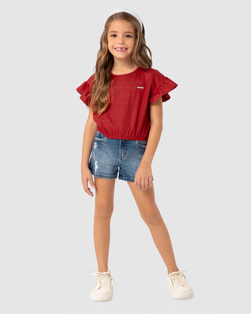 A Blusa Menina Box Barra Curvada Elástico Em Algodão - Carinhoso combina conforto e estilo em uma única peça. Feita em algodão com detalhe glitter, essa blusa oferece suavidade ao toque e liberdade de movimento. Com sua barra curvada e elástico na cintura, proporciona um ajuste perfeito e um visual moderno, ideal para todas as ocasiões.