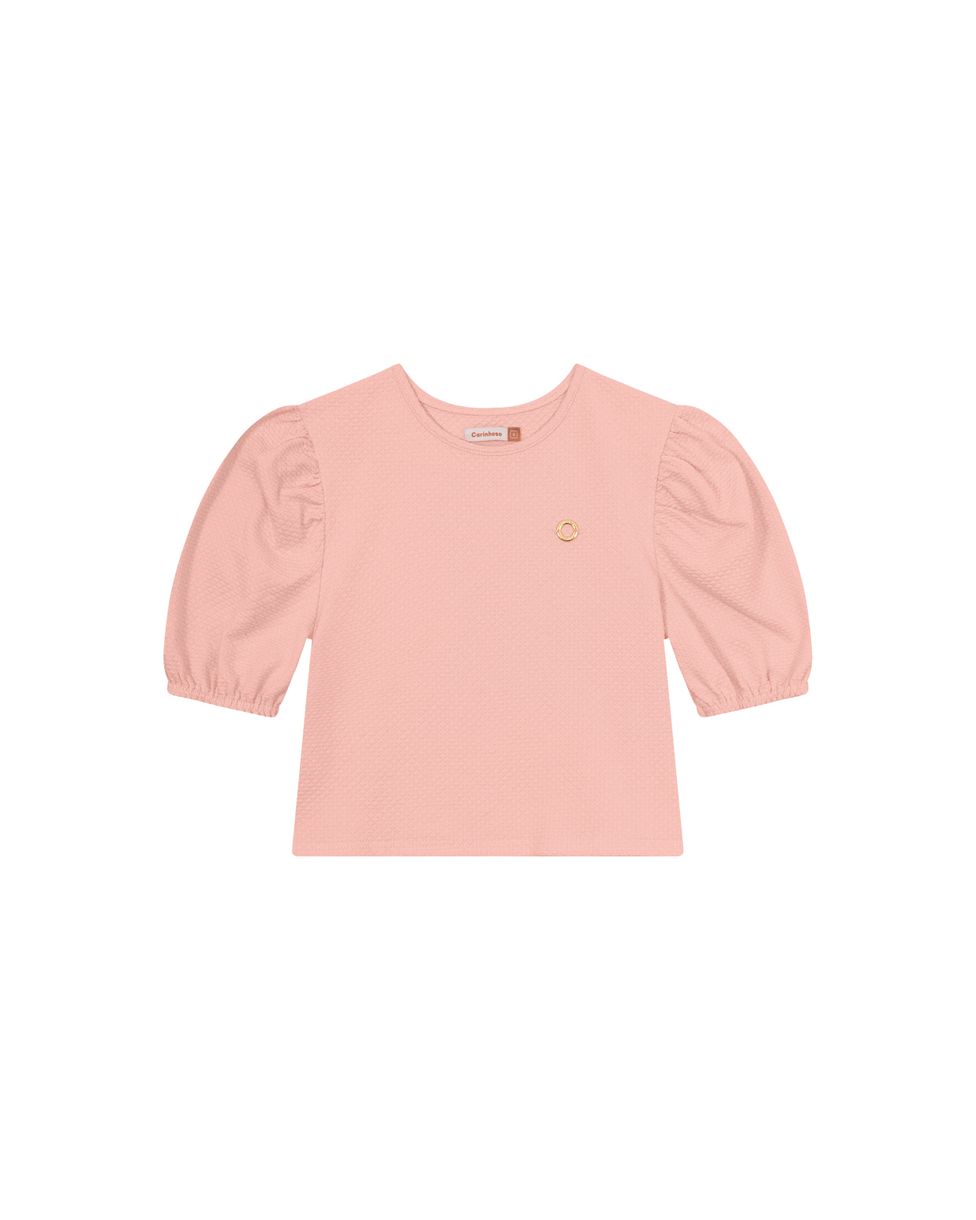 Blusa Menina Cropped Manga Bufante Em Malha Texturizada - Carinhoso