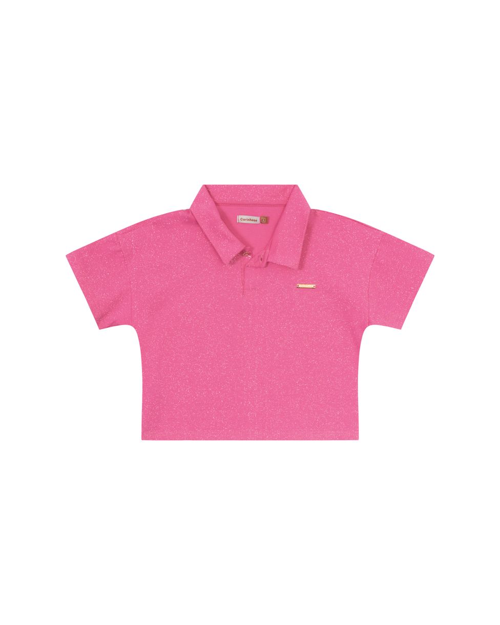 Blusa Menina Cropped Peitilho Frontal Em Algodão Com Glitter - Carinhoso