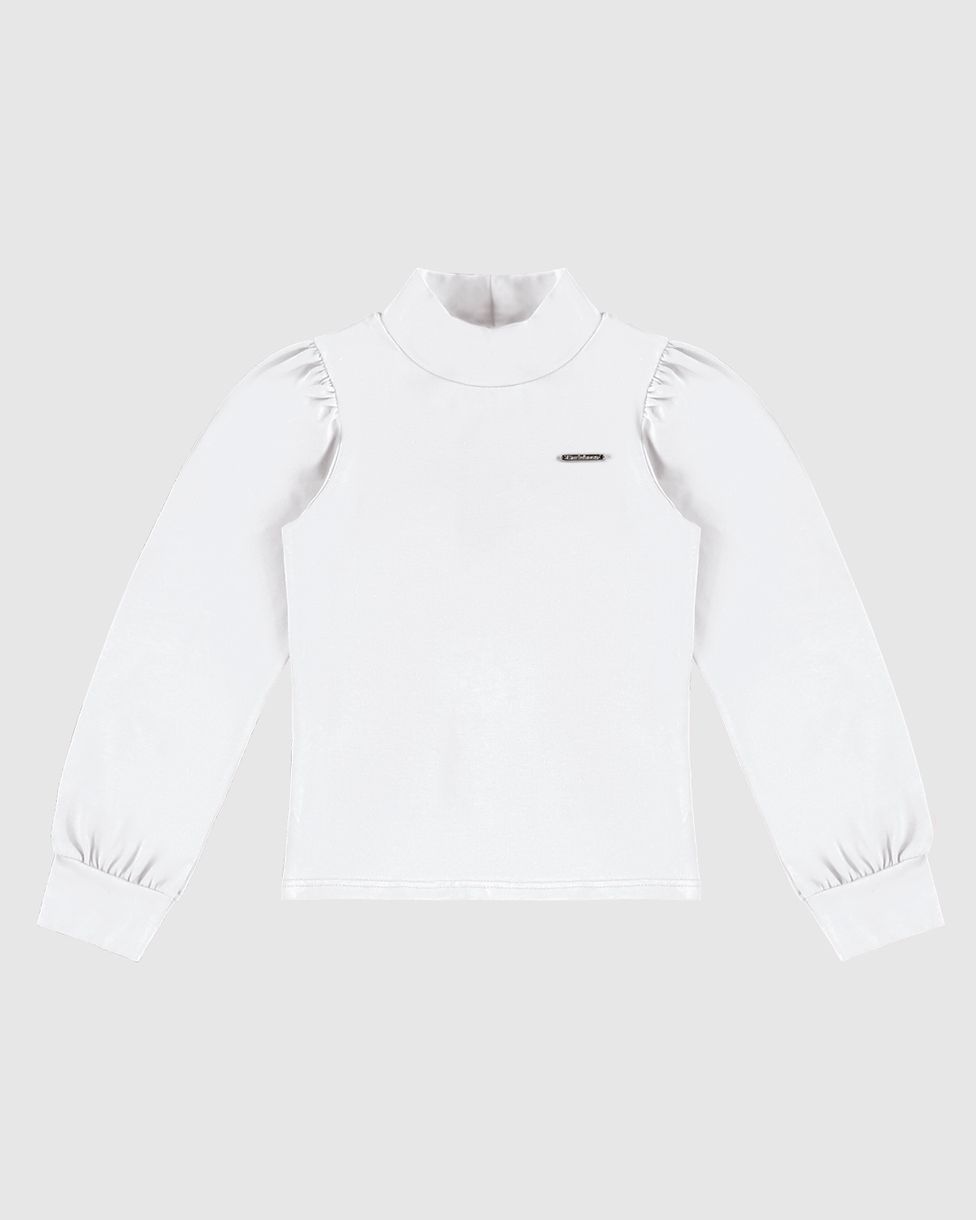 Blusa feita em malha de algodão Cotton Light. Apresentando gola alta, mangas longas e plaqueta metálica no peitoral. Perfeita para o dia a dia e para proteger as meninas!
