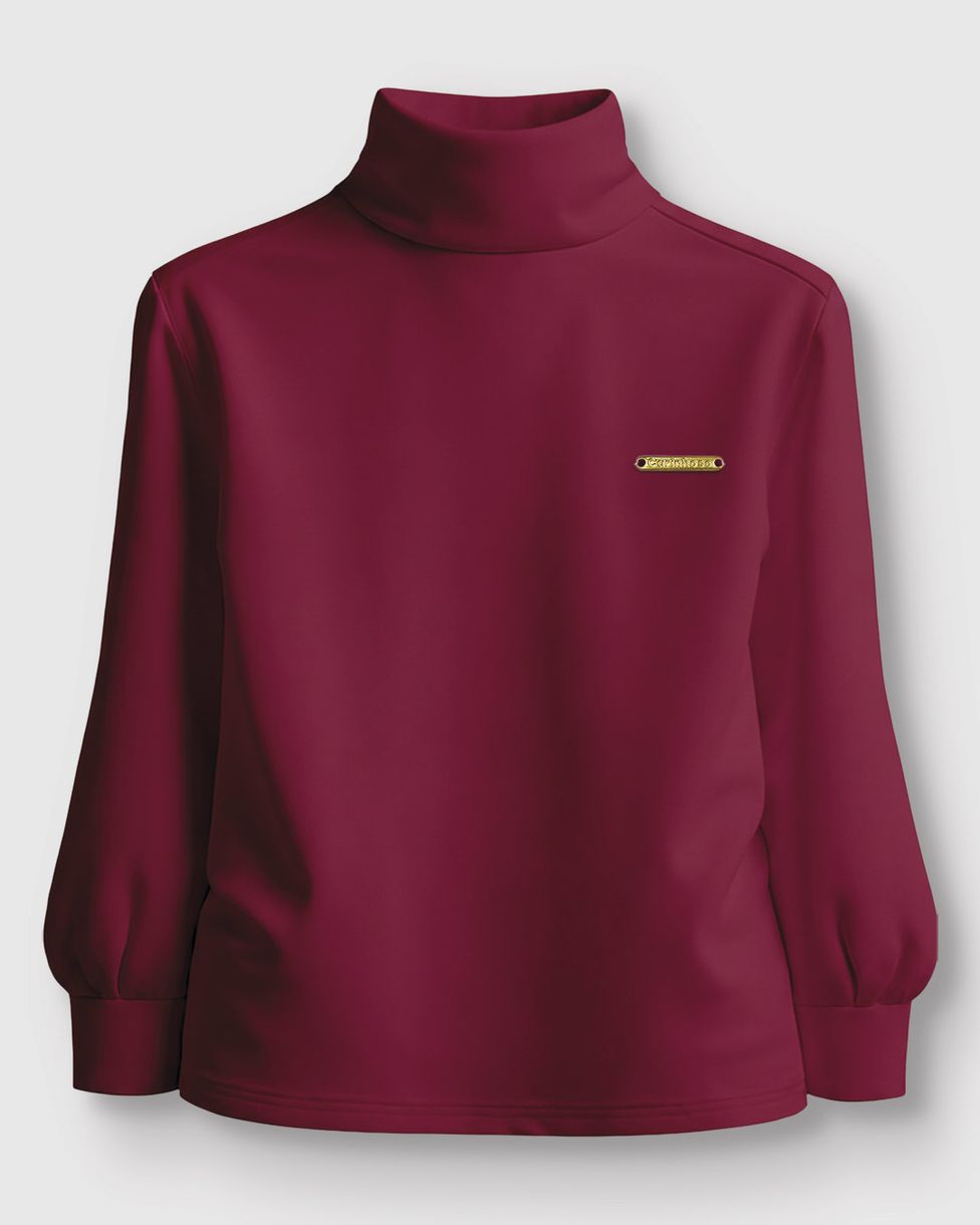Blusa feita em malha de algodão Cotton Light. Apresentando gola alta, mangas longas e plaqueta metálica no peitoral. Perfeita para o dia a dia e para proteger as meninas!