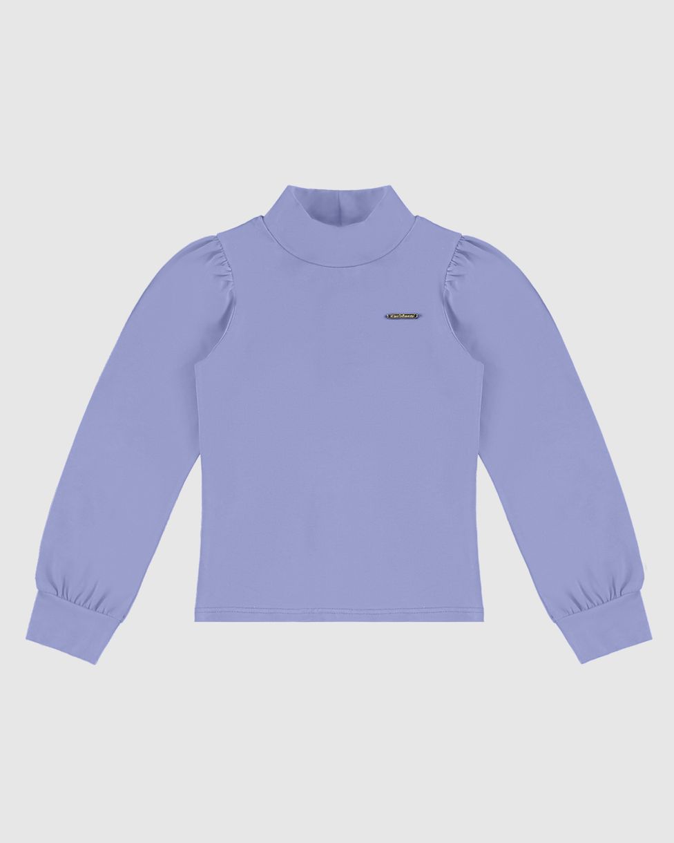 Blusa feita em malha de algodão Cotton Light. Apresentando gola alta, mangas longas e plaqueta metálica no peitoral. Perfeita para o dia a dia e para proteger as meninas!