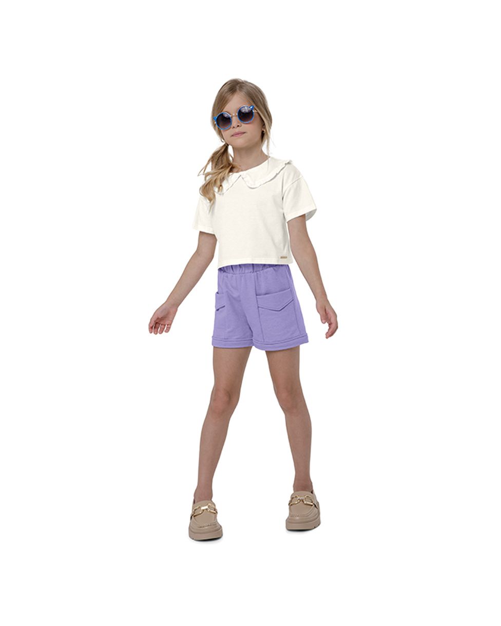 Blusa confeccionada em malha de algodão. Básico com um toque de estilo, a Blusa Cropped conta com comprimento mais encurtado, apresentando gola redonda com babados, mangas curtas e detalhe de plaqueta metálica na barra. Além disso, ela foi feita em malha de algodão de toque suave garantindo conforto e muita versatilidade de uso no dia a dia. Ideal para combinar com shorts em jeans e tênis de caninho!