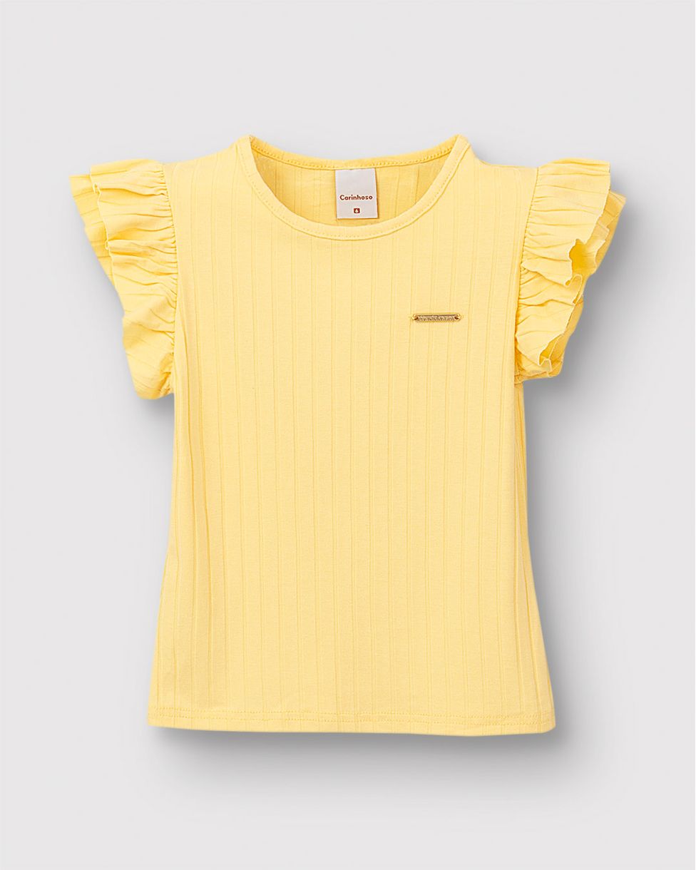 Blusa Menina Manga Babado Com Franzido Em Malha Viscose Canelada - Carinhoso