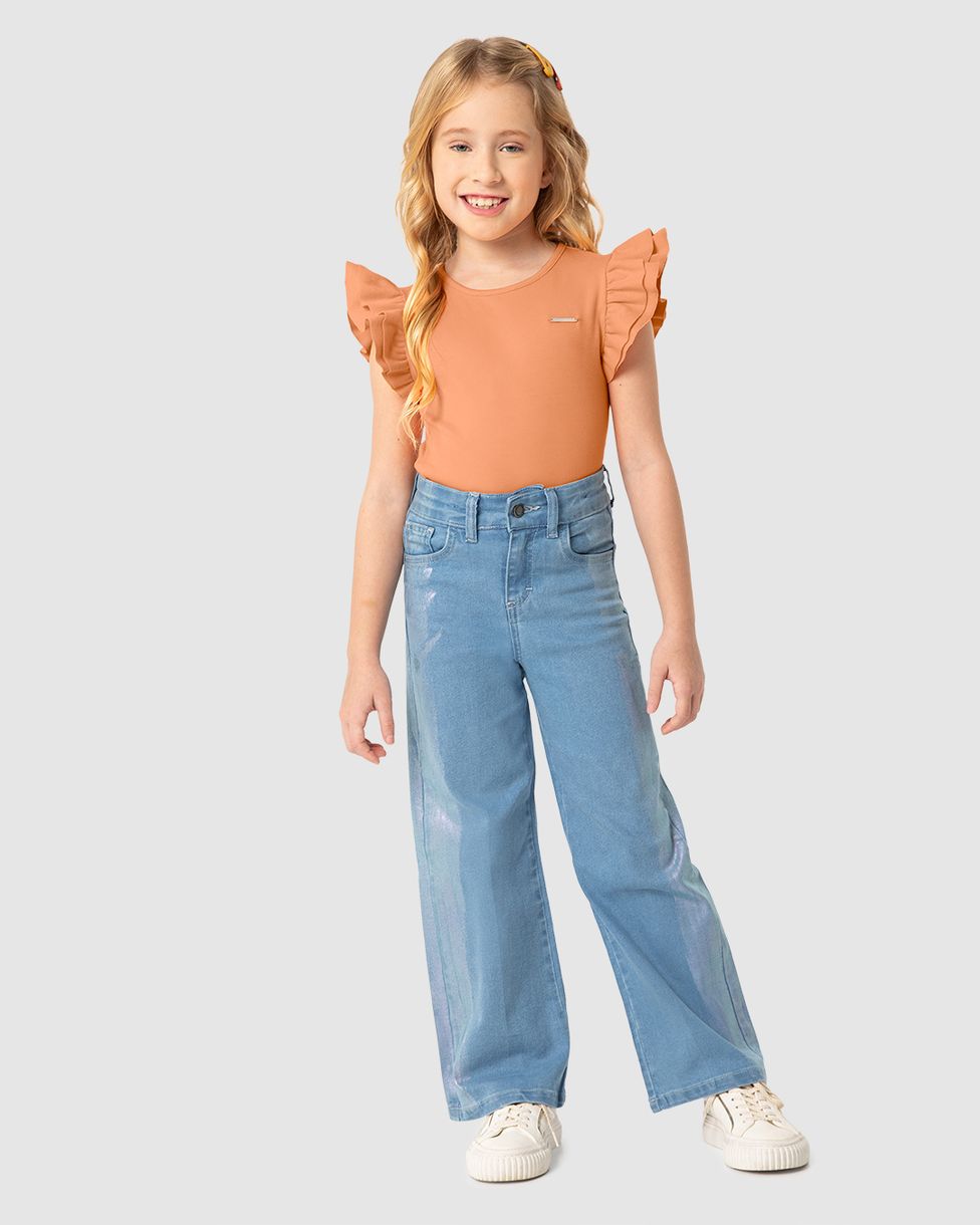 InfantilBlusas e CamisetasBlusas BásicasBlusa Menina Manga Babado Em Ribana - Carinhoso