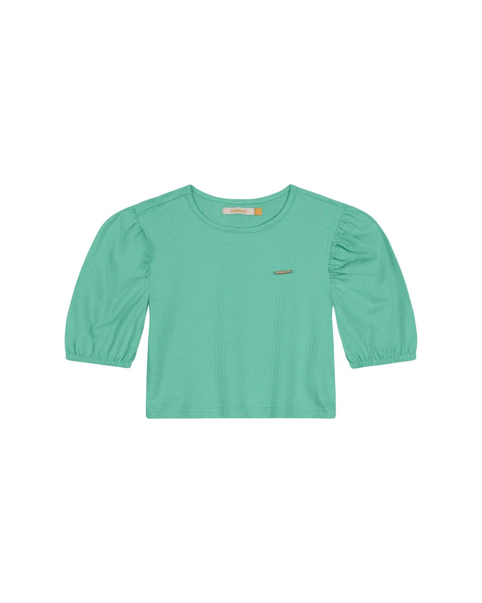 Blusa Menina Manga Bufante Em Malha Texturizada Carinhoso