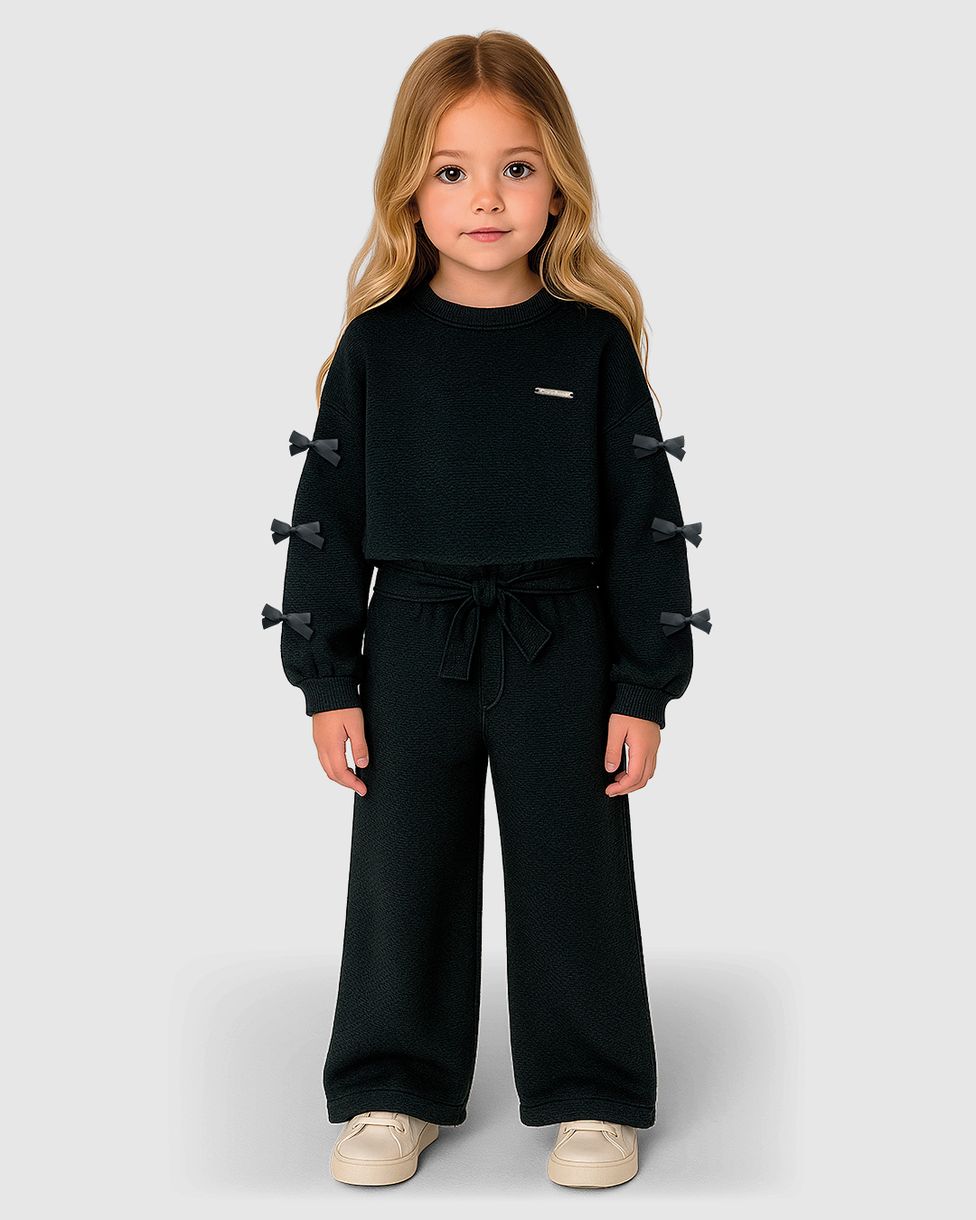 A Blusa Cropped da Carinhoso é o destaque doce do Outono Inverno 26. Em malha texturizada, a peça une modernidade e delicadeza com seus laços aplicados nas mangas. Perfeita para meninas que amam um visual fashionista, garantindo conforto e estilo em qualquer ocasião
