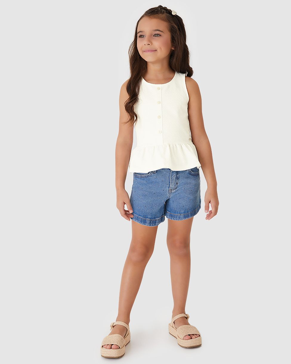 Blusa Menina Peplum Botões Frontais Em Malha Texturizada - Carinhoso Off White - 10