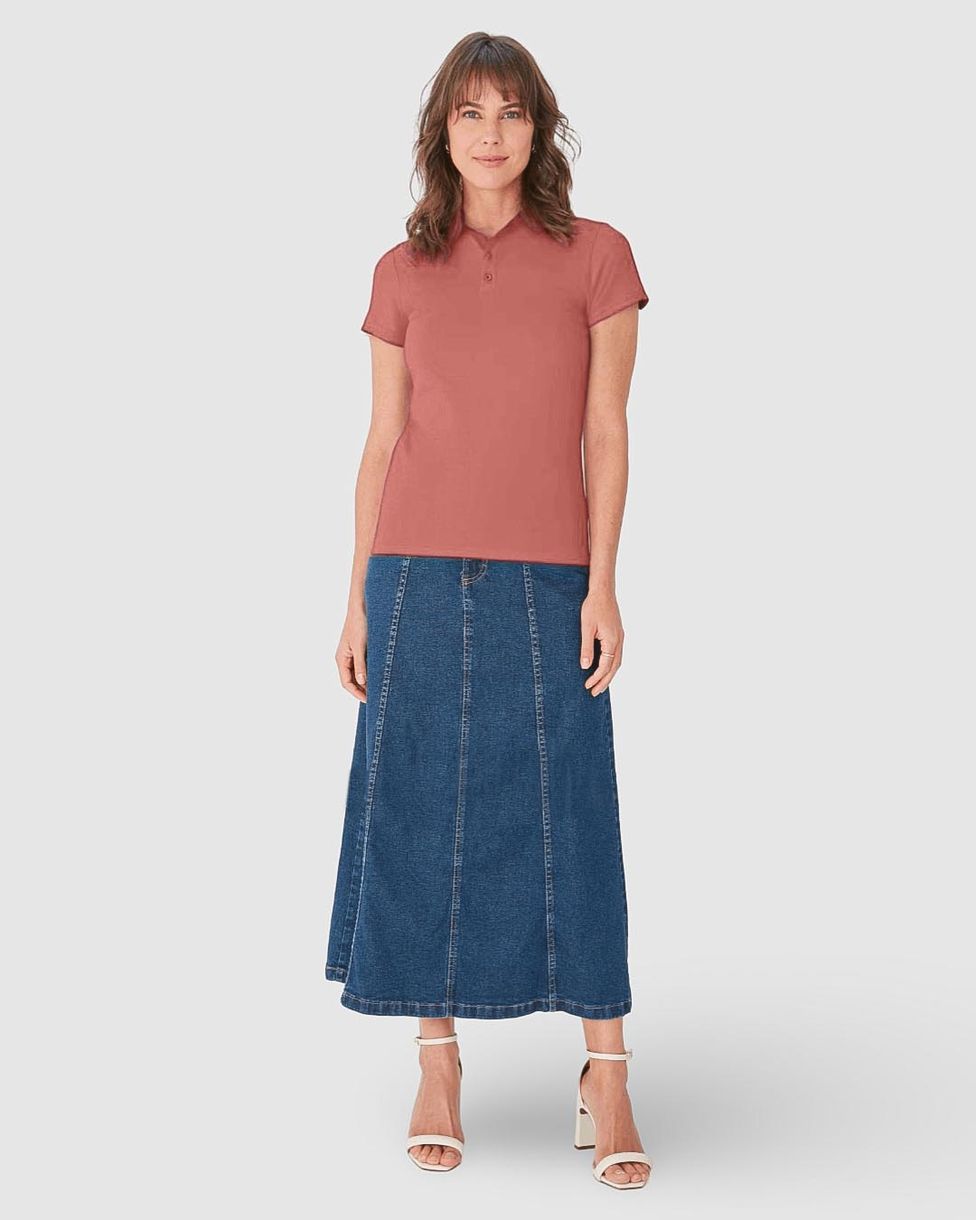 Blusa Polo Básica Feminina Com Peitilho Em Piquet Stretch