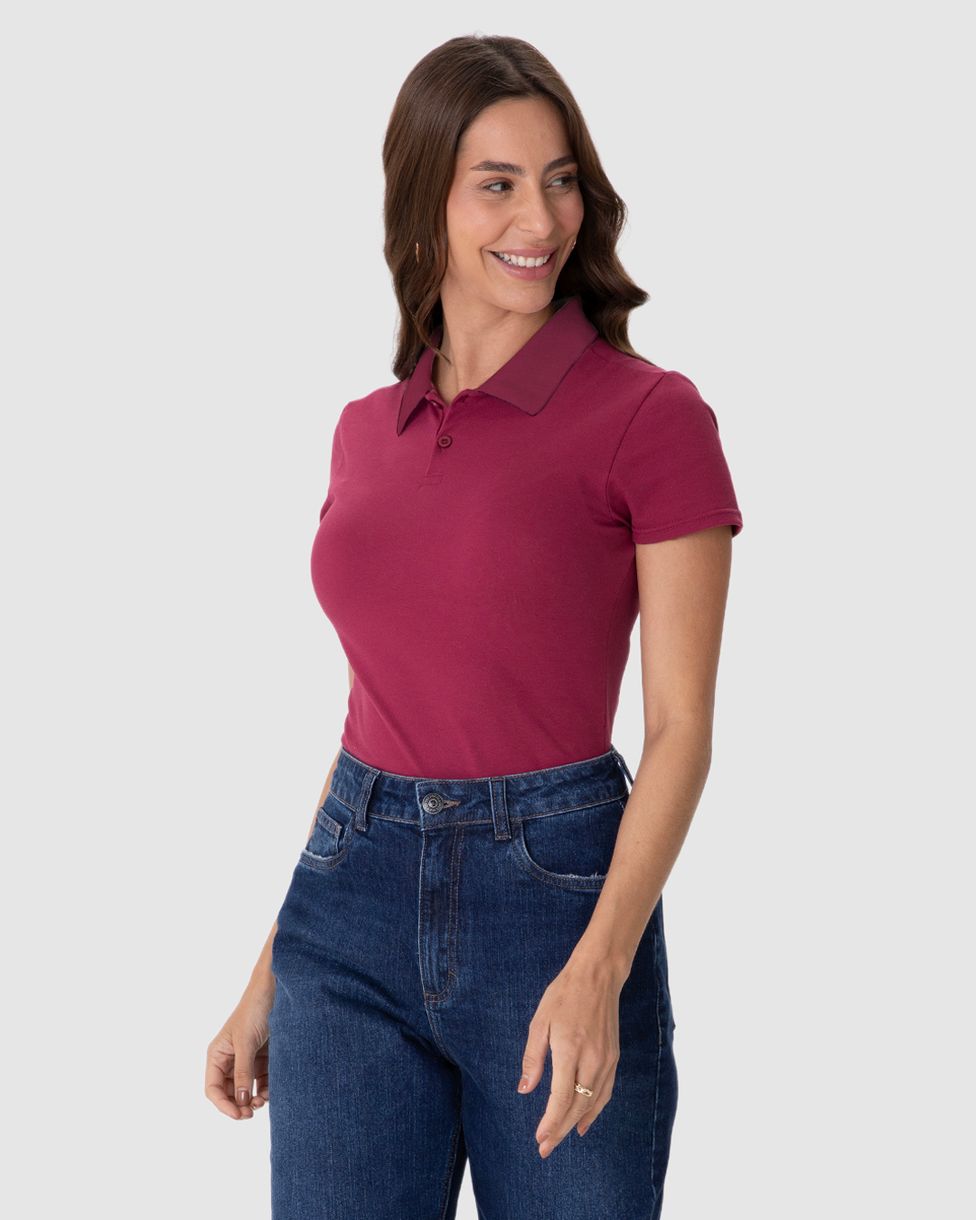 Blusa Polo Básica Feminina Com Peitilho Em Piquet Stretch