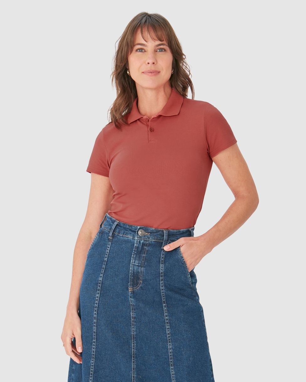Blusa Polo Básica Feminina Com Peitilho Em Piquet Stretch
