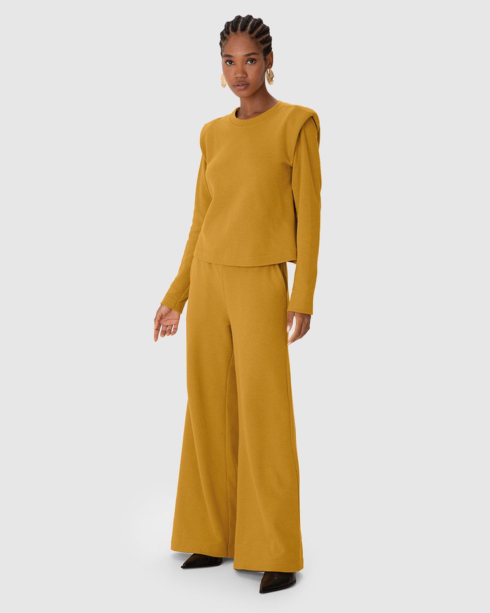 Blusão Amplo Feminino Manga Longa Detalhe Ombreira Em Tricô Flanelado - ENFIM Amarelo - P