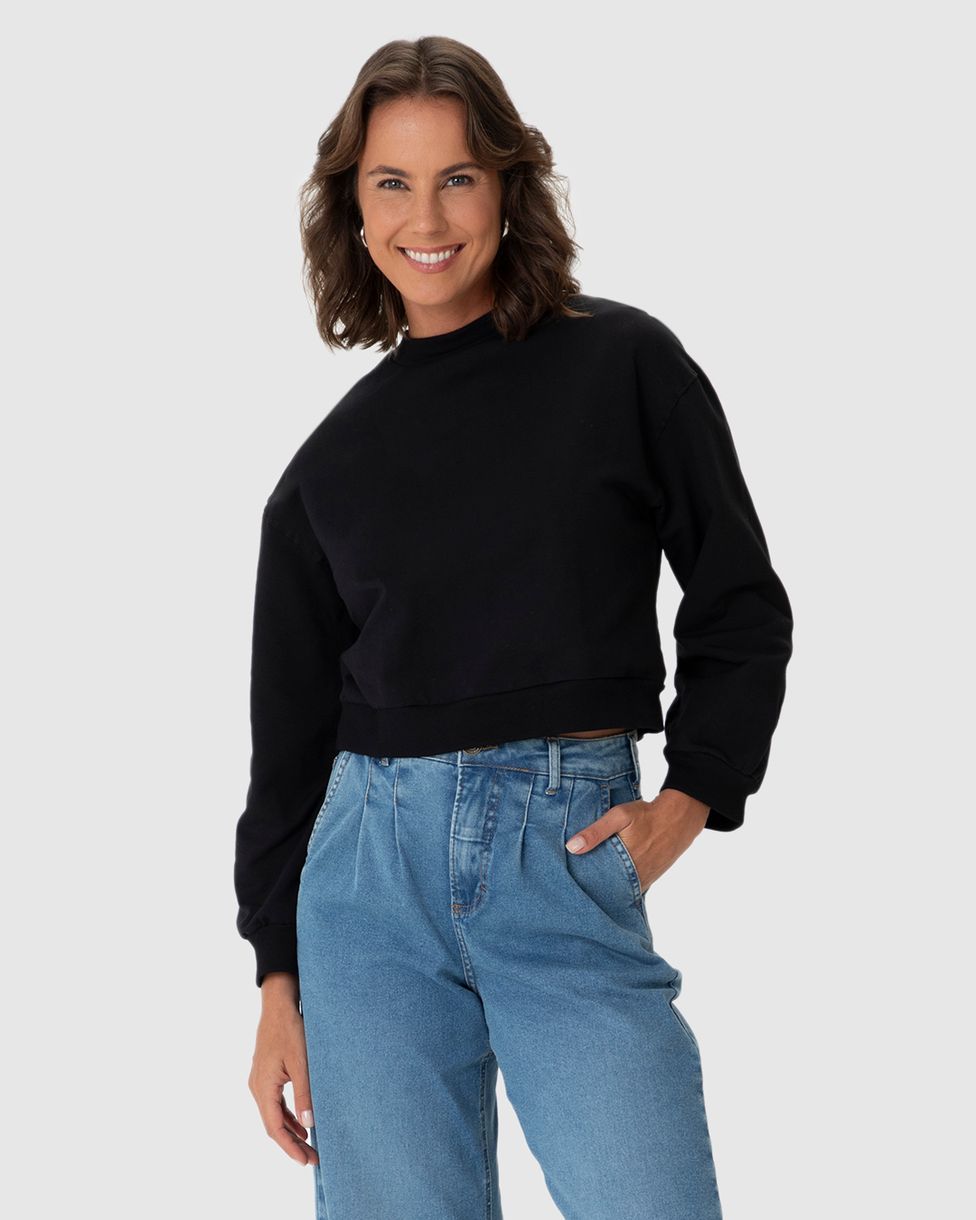 Blusão Básico Feminino Cropped Em Moletom Stretch Flanelado