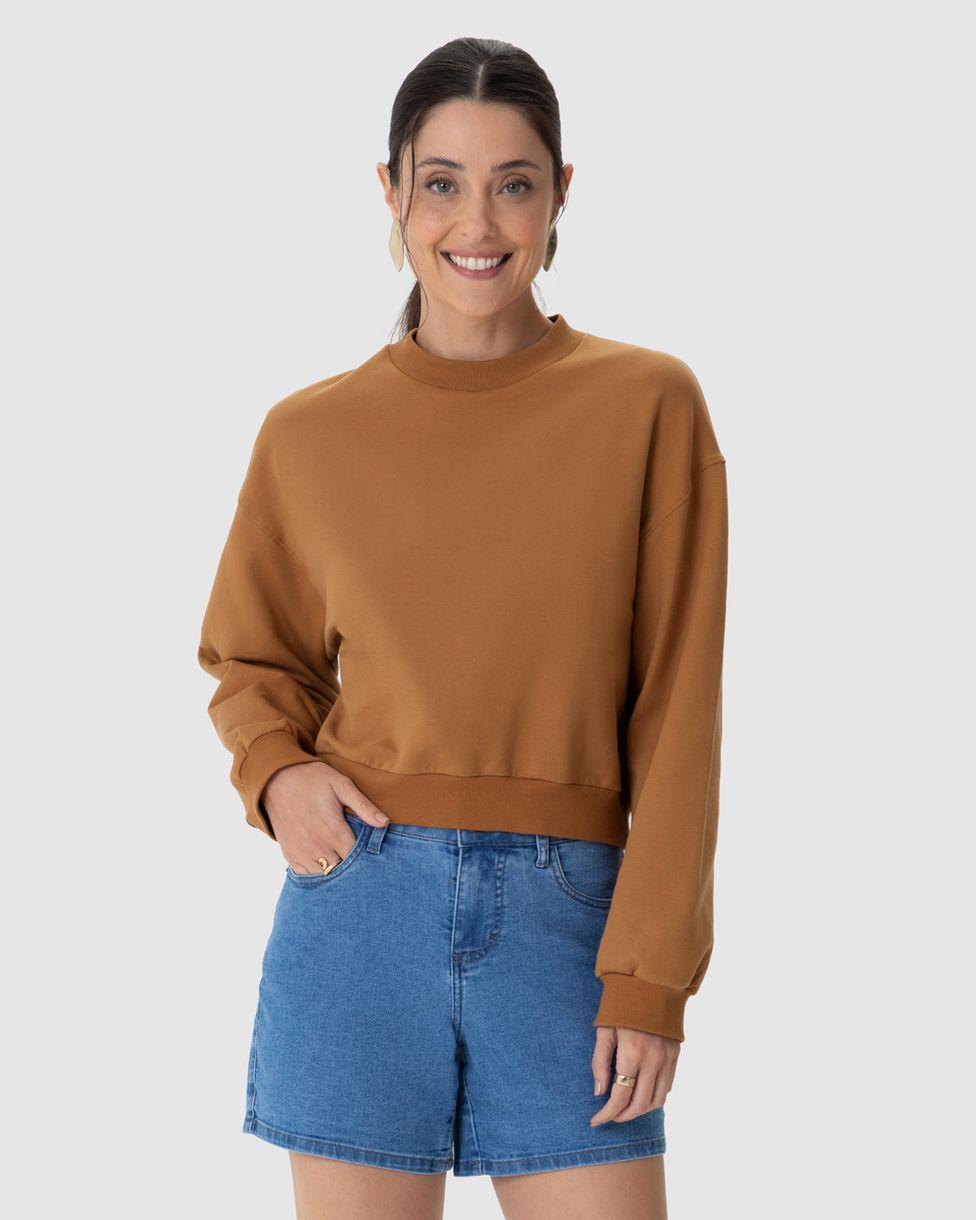 Blusão Básico Feminino Cropped Em Moletom Stretch Flanelado