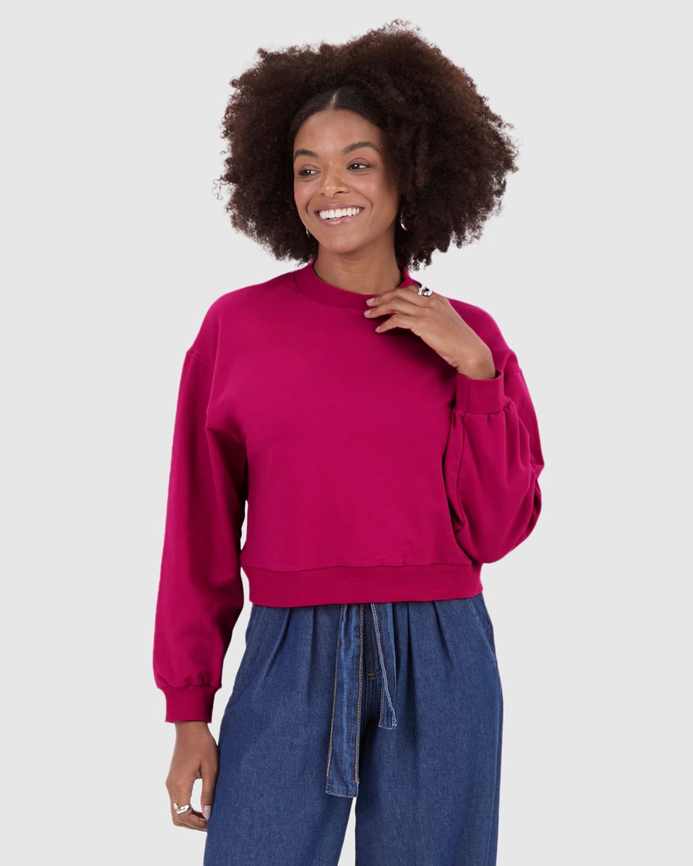 Blusão Básico Feminino Cropped Em Moletom Stretch Flanelado