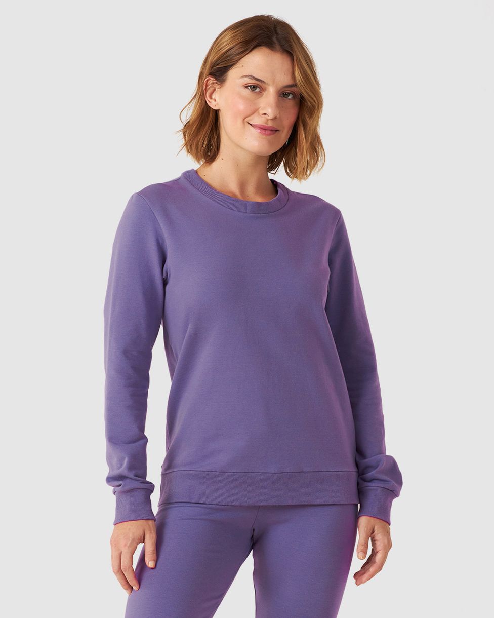 Blusão Básico Feminino Decote Redondo Em Moletom Stretch Flanelado