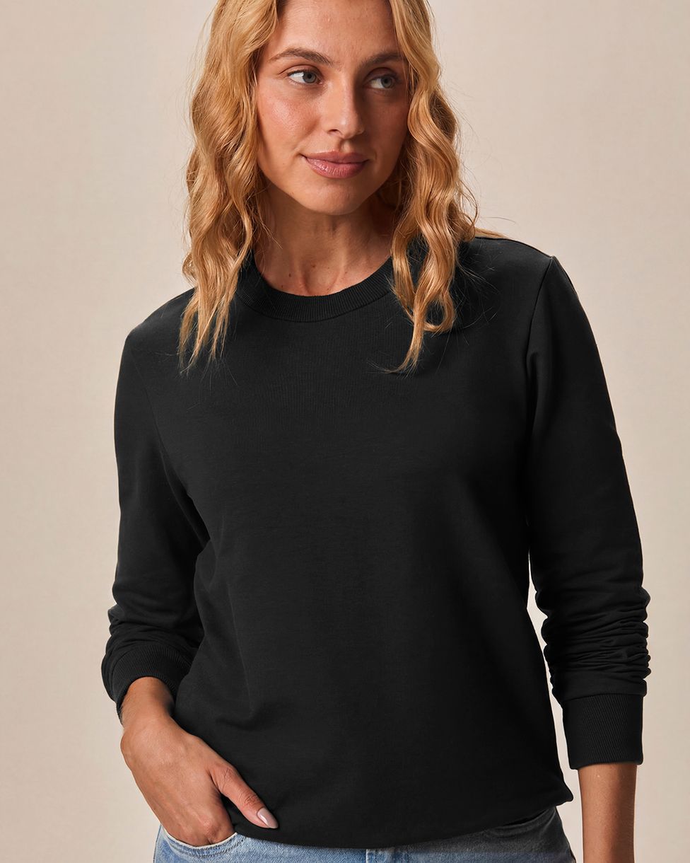 Blusão Básico Feminino Manga Longa Em Moletom Stretch
