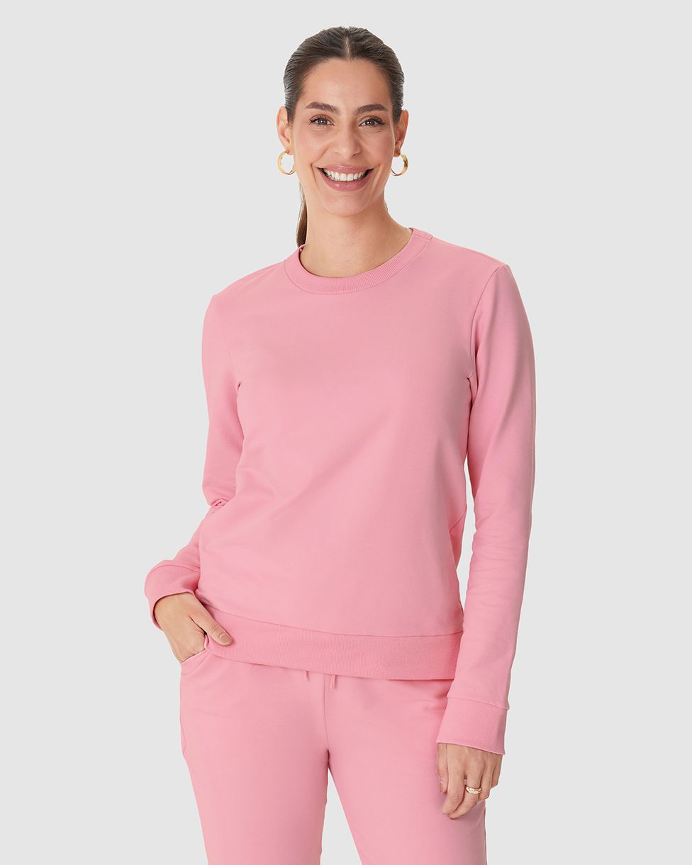 Blusão Básico Feminino Manga Longa Em Moletom Stretch Rosa - XGG