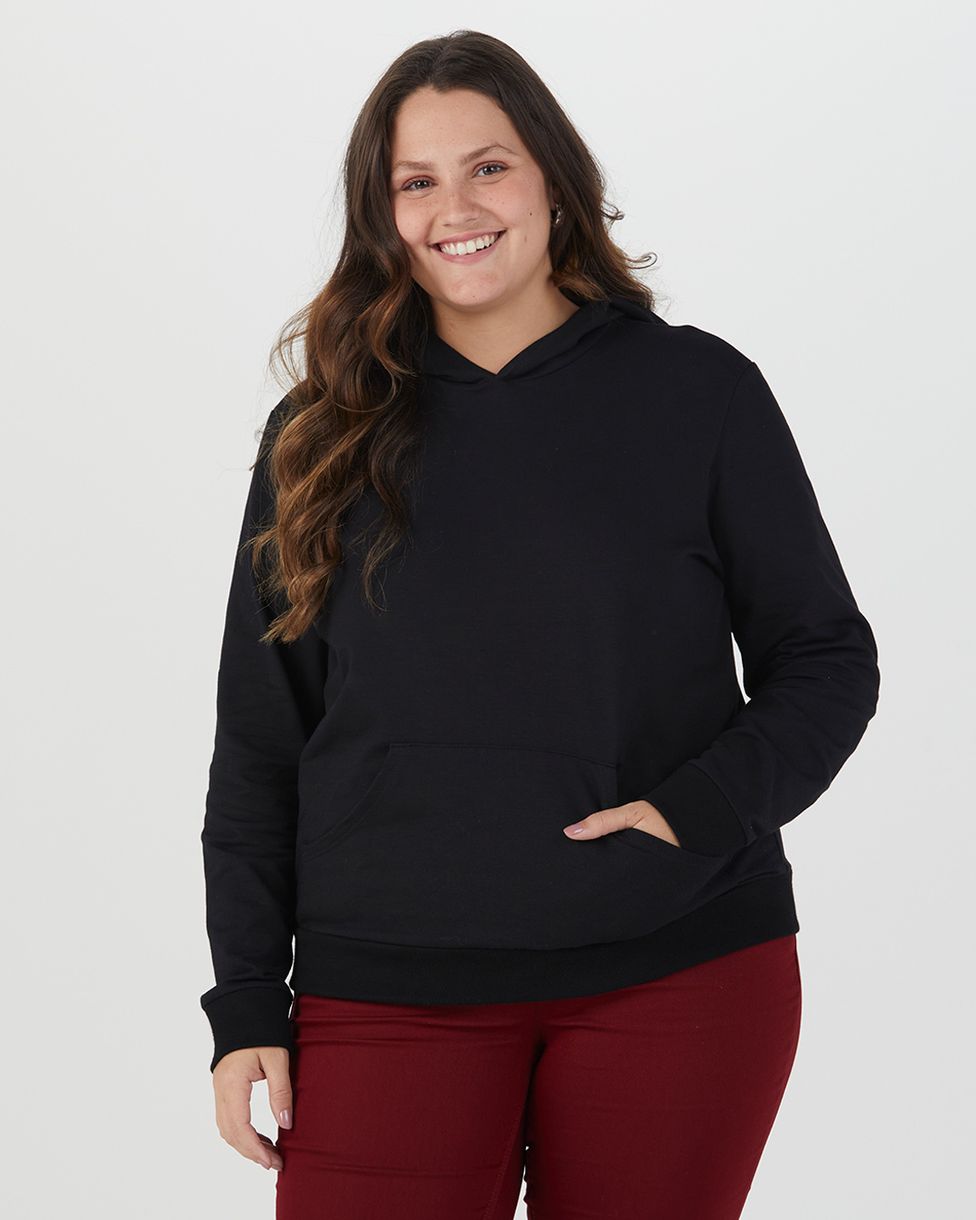 Blusão Básico Feminino Plus Size Bolso Canguru Em Moletom Stretch Flanelado