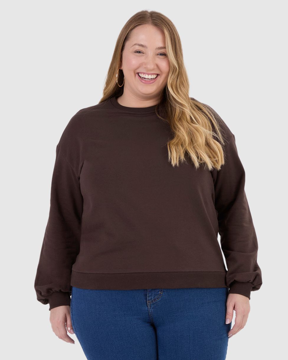 Blusão Básico Feminino Plus Size Decote Redondo Em Moletom Stretch Flanelado