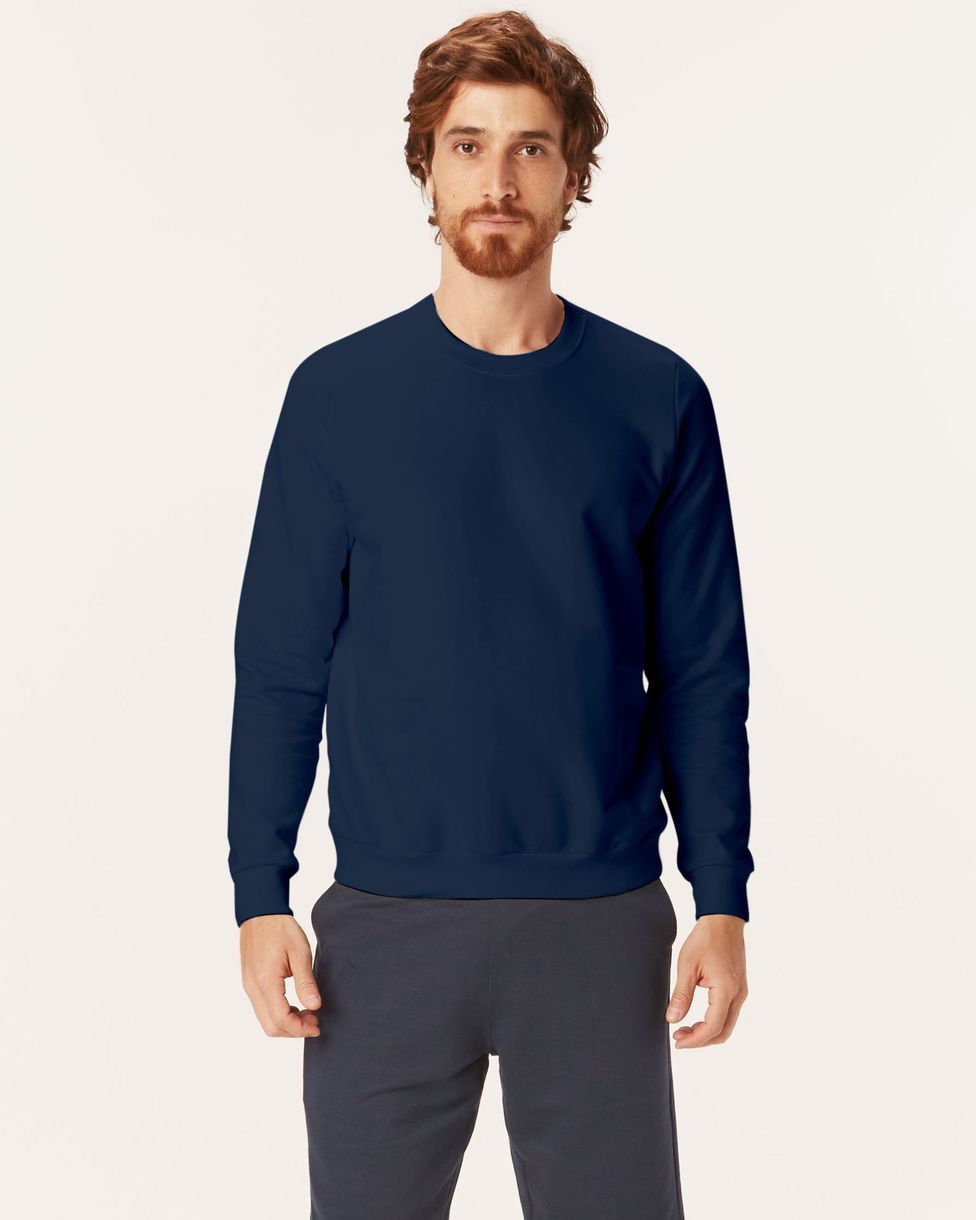 Blusão Básico Masculino Decote Redondo Em Moletom Flanelado